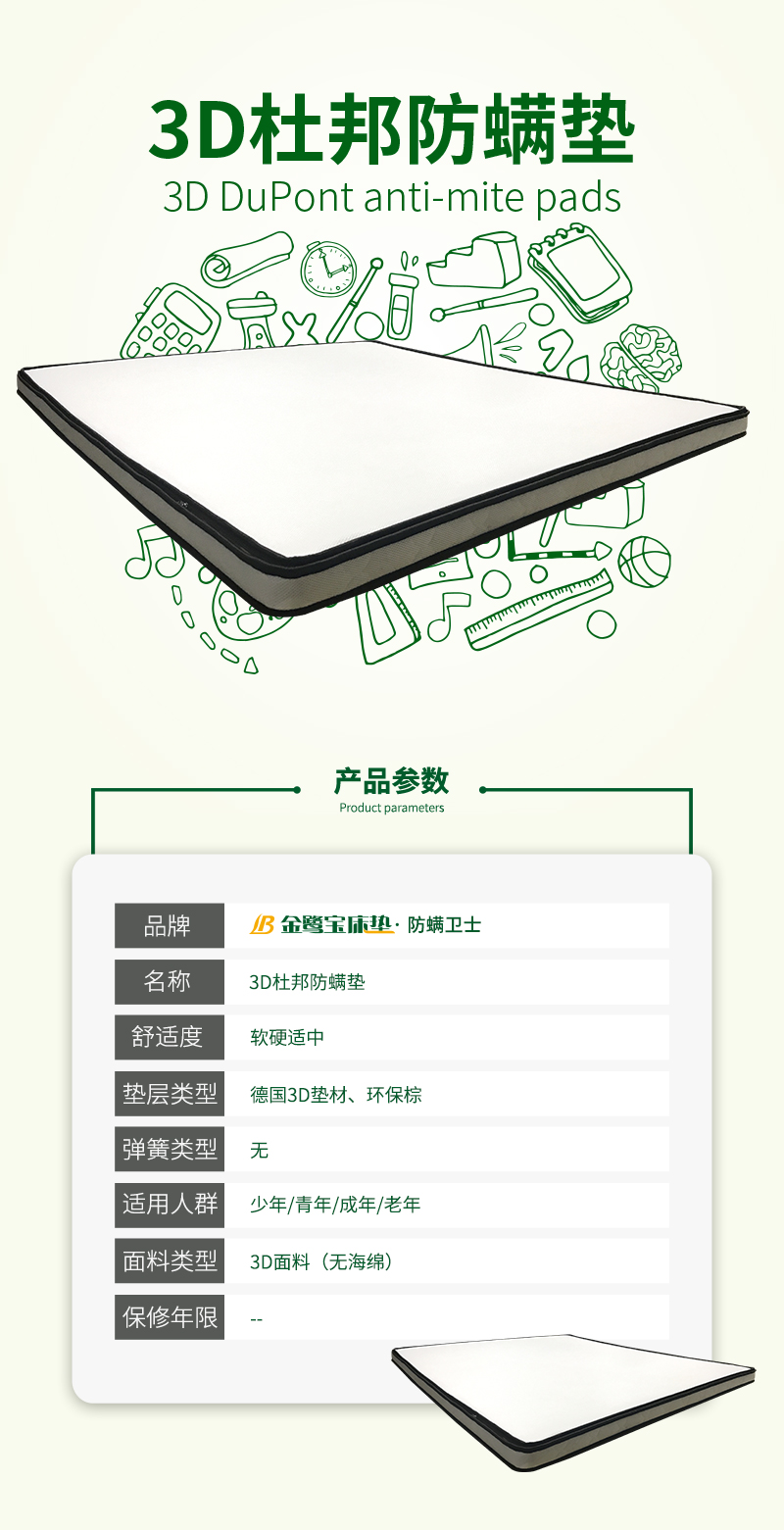 名称:JF786-3D杜邦防螨垫