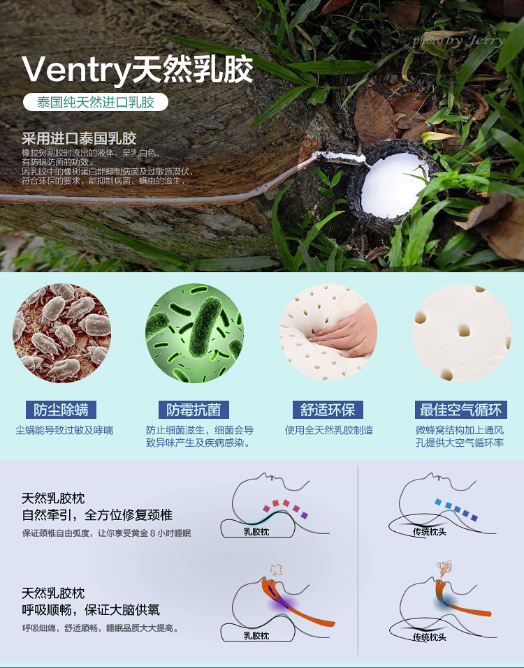 天然乳胶材质具有天然环保,防菌防螨,舒适健康,持久耐用